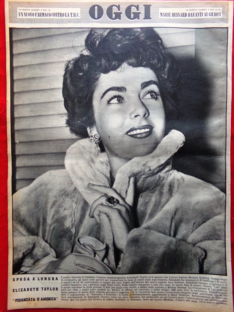 Retrocopertina Oggi nr. 10 del 1952 Elizabeth Taylor Fidanzata d'America