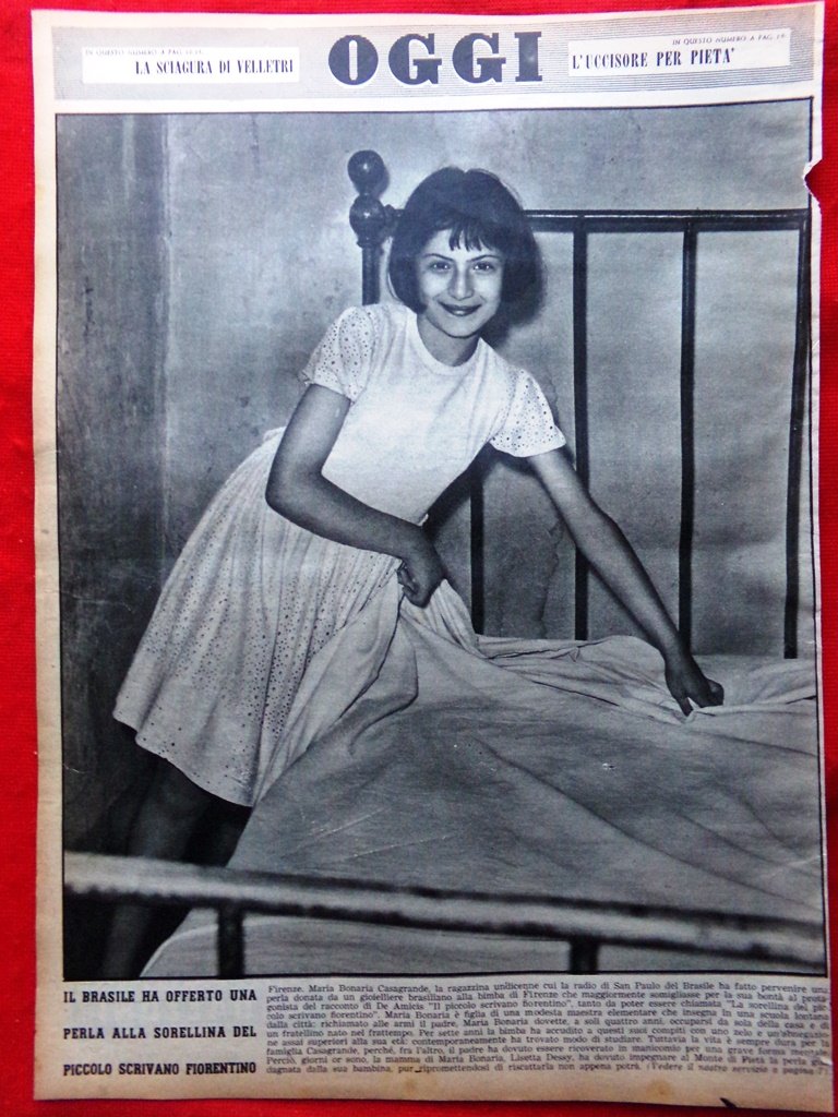 Retrocopertina Oggi nr. 15 del 1952 Brasile Aiuta Maria Bonaria Casagrande Perla