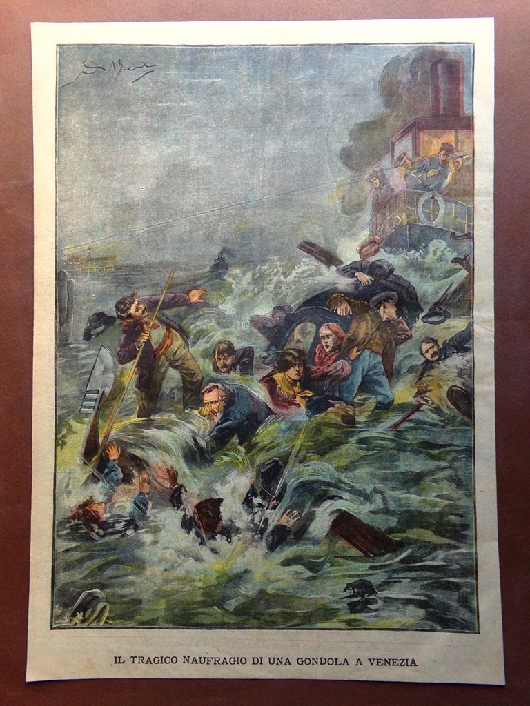 Retrocopertina Tribuna Illustrata nr. 51 del 1904 naufragio Gondola a Venezia