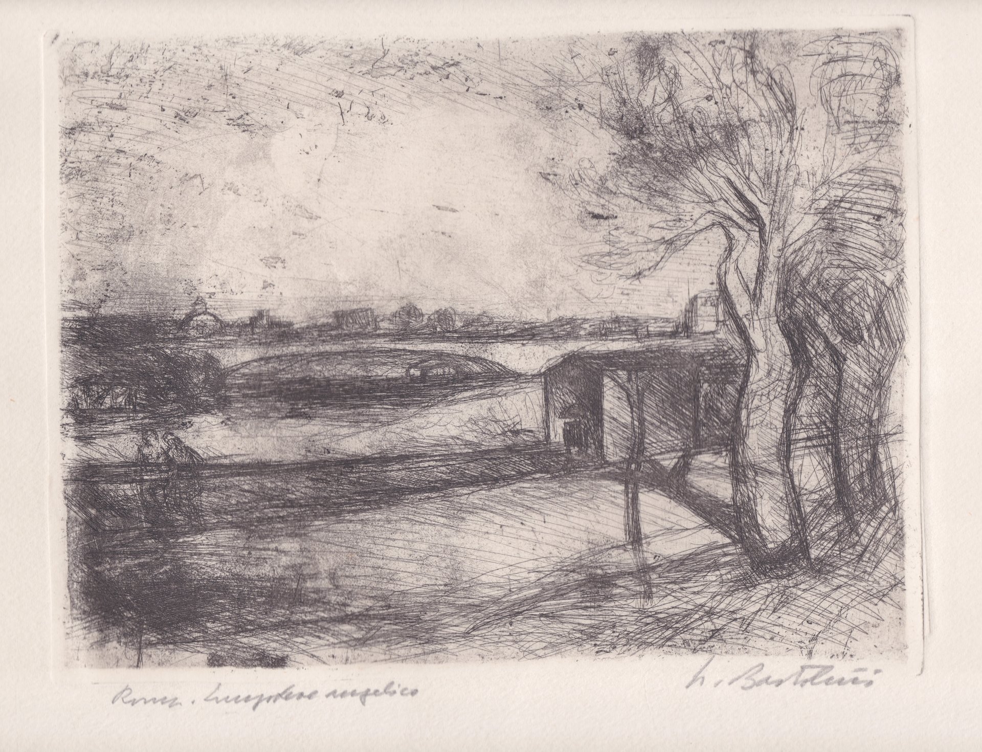 L'acquaforte è nota anche con il titolo Roma Viale angelico. Nel volume: Gli esemplari unici e rari è pubblicato un esemplare (n 186) numerato 1/10 maggiormente pulito nel primo piano. Firma a matita in basso a destra: L. Bartolini. Titolo a matita a sinistra: Roma. Lungoteve angelico. Al verso timbro tondo nel margine bianco: Galleria Ghelfi via Roma 7. Sulla carta di chiusura della cornice è stato scritto: Esposto alla XXIV Biennale di Venezia.