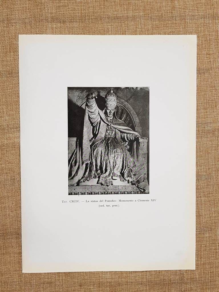 Roma nel 1917 Monumento a Clemente XIV di Antonio Canova Chiesa SS. Apostoli Rara tavola estratta da pubblicazione del 1917 Stampata su carta non retroscritta Roma nel 1917 Monumento a Clemente XIV di Antonio Canova La statua del Pontefice Chiesa dei Santissimi Apostoli Lazio Dimensioni: Cm 30,00 x 22,00 Codice prodotto: GEO-159