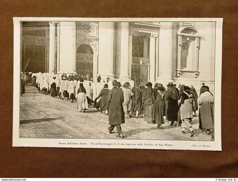 Rara stampa estratta da pubblicazione del 1925. .stampa che ha quindi oltre 95 anni! Roma nel 1925 Anno Santo Un pellegrinaggio fa ingresso nella Basilica di San Pietro Lazio Codice articolo: II1925-014 Dimensioni Cm 25,00 x 16,00 Paypal Carta di credito Bonifico bancario Spedizione con posta ordinaria o raccomandata scelta dall'Acquirente nel momento del pagamento Clicca qui per accedere al nostro Store ed al suo sterminato archivio
