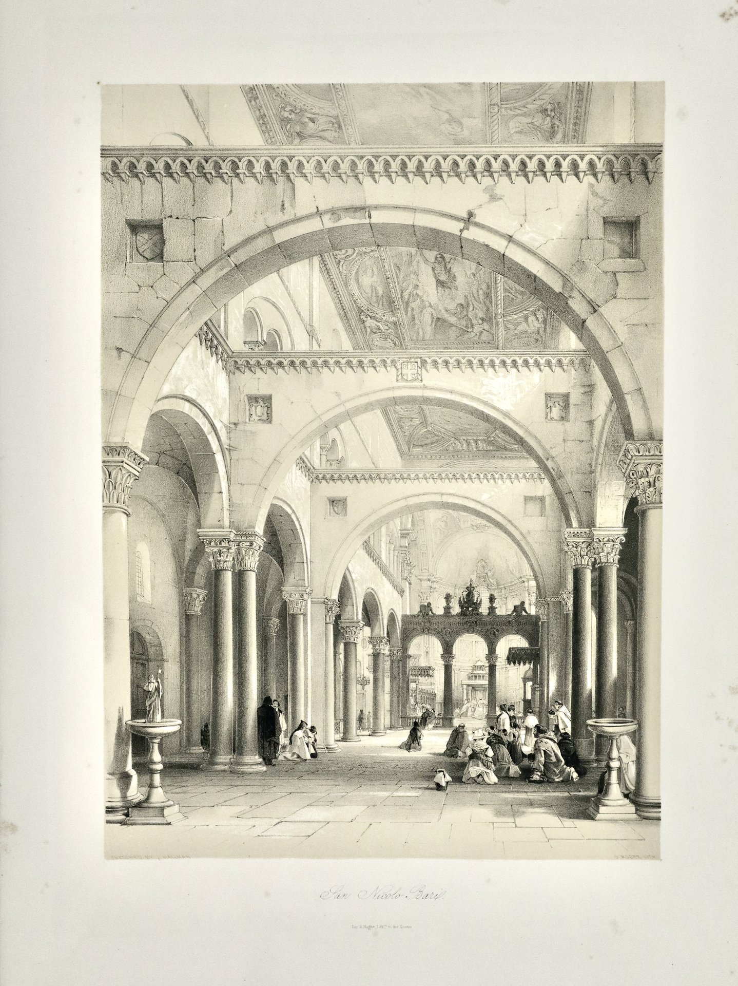 Litografia su disegno di D. Quaglio, mm 365x265. Veduta interna della chiesa. Tratta da "The ecclesiastical architecture of Italy" di Henry Gally Knight. Bell'esemplare marginoso