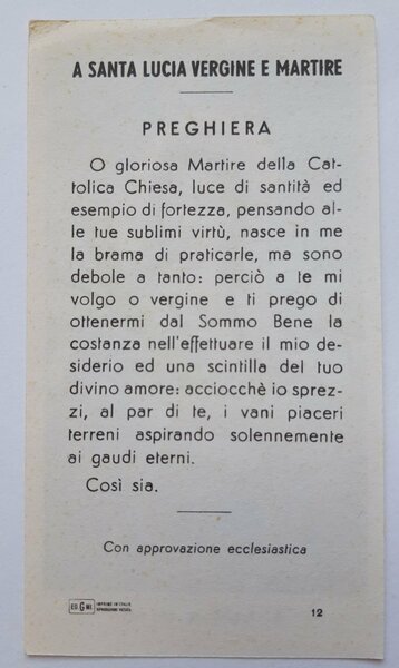 Santino holy card Santa Lucia V. M. Ed. G.mi 12