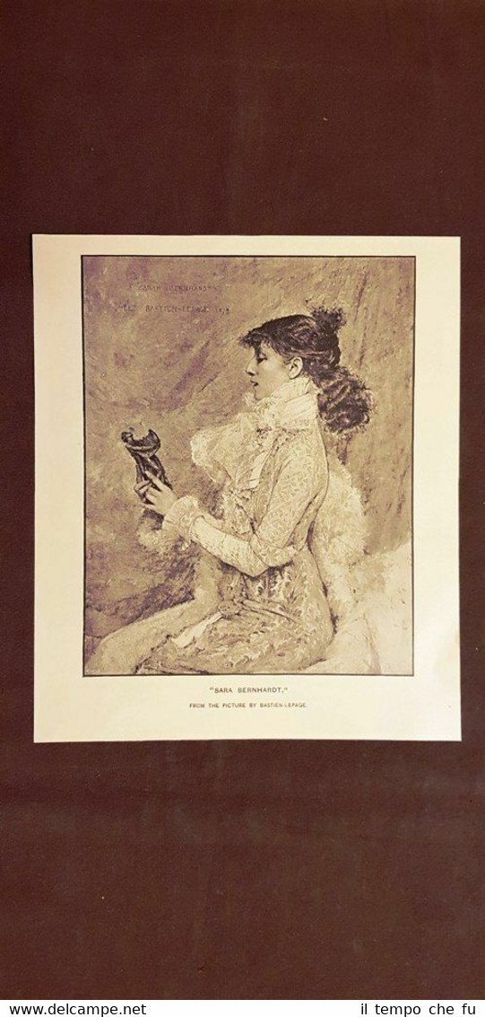 Rara stampa estratta da pubblicazione del 1888. .stampa che ha quindi oltre 132 anni! Sara Bernhardt e La raccoglitrice di patate Quadri di Bastien Lepage Codice articolo: II1876-135 Dimensioni: Fronte/retro Cm 18,00 x 21,00 + Cm 18,00 x 17,00 Paypal Carta di credito Bonifico bancario Spedizione con posta ordinaria o raccomandata scelta dall'Acquirente nel momento del pagamento Clicca qui per accedere al nostro Store ed al suo sterminato archivio