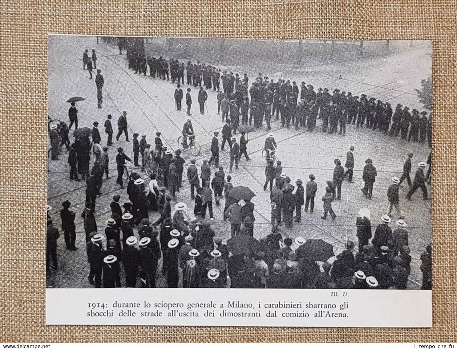 Sciopero generale di Milano del 1914 Comizio all'Arena Carabinieri e dimostranti Rara stampa estratta da pubblicazione di metà '900 Stampata su carta non retroscrittaLo sciopero generale di Milano del 1914 Il comizio all'Arena I carabinieri sbarrano gli sbocchi delle strade ai dimostranti LombardiaCodice articolo: Stapo-059 Dimensioni: Cm 15,00 x 11,00