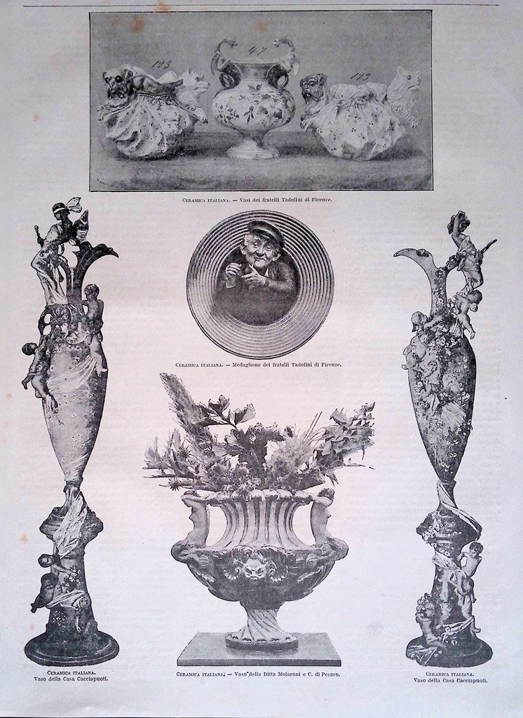 Stampa del 1889 Altre Ceramiche Italiane Esposizione di Parigi Pesaro Tadolini