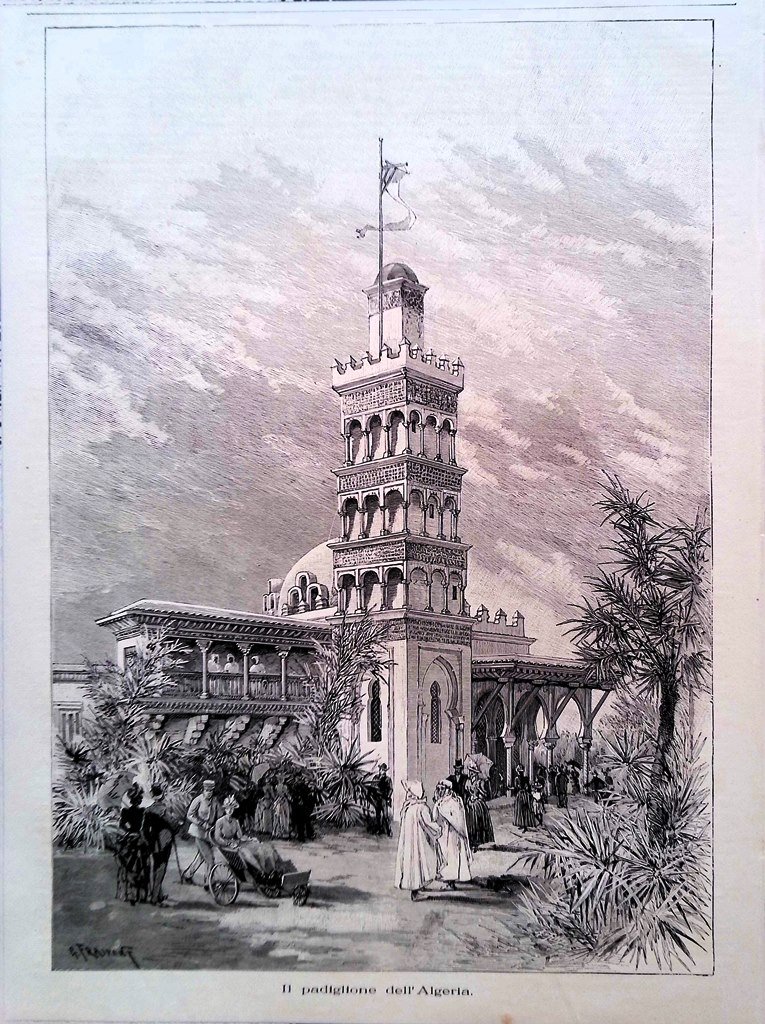Stampa del 1889 Esposizione di Parigi Padiglione dell'Algeria
