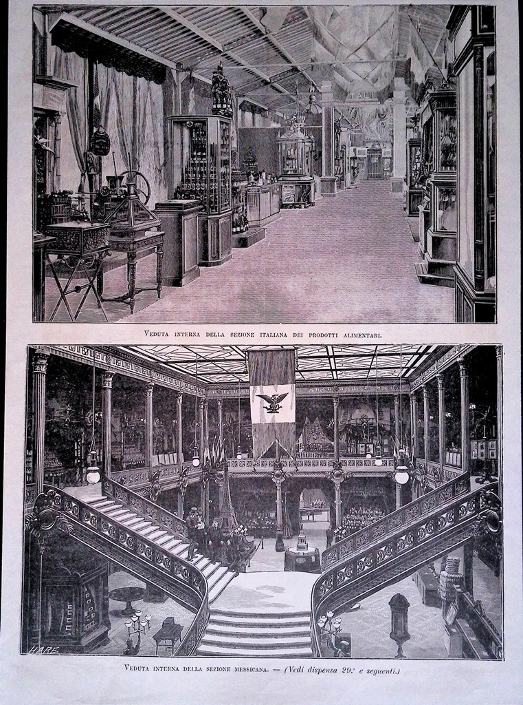 Stampa del 1889 Sezione Italiana Alimentari Messicana Veduta Interna Esposizione