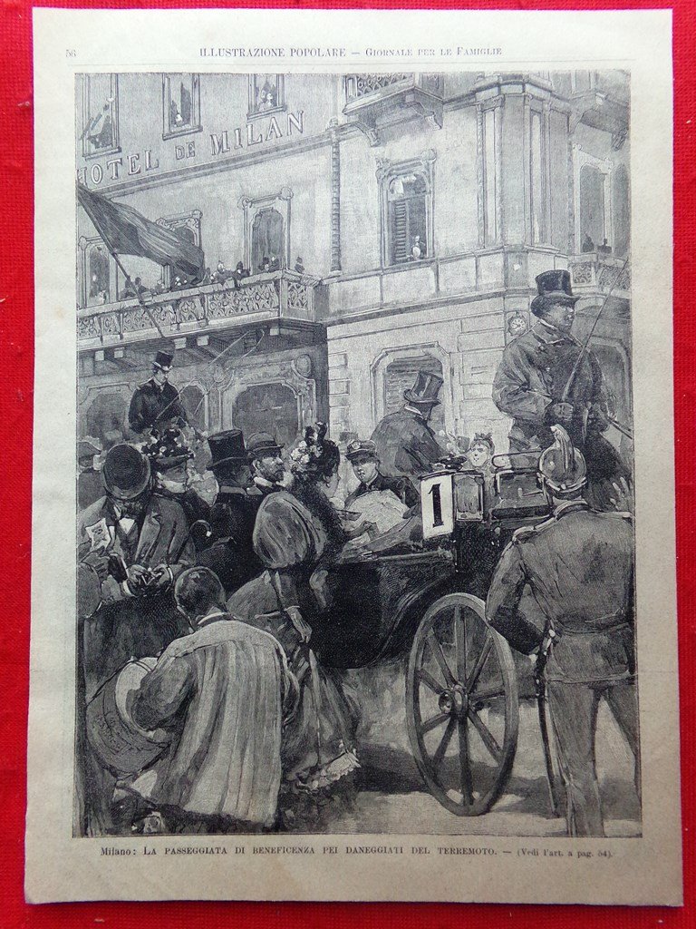 Stampa del 1894 Milano La passeggiata di beneficienza per i terremotati