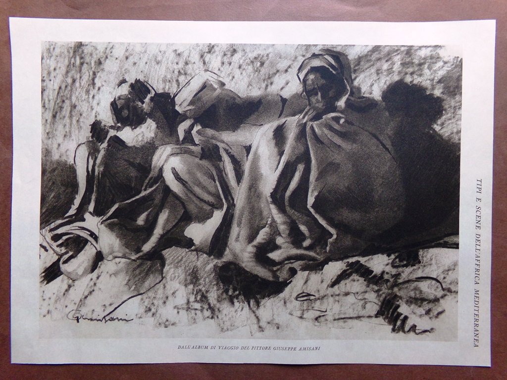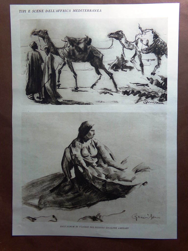 Stampa del 1927 Africa Mediterranea Giuseppe Amisani Album Viaggio Cammelli