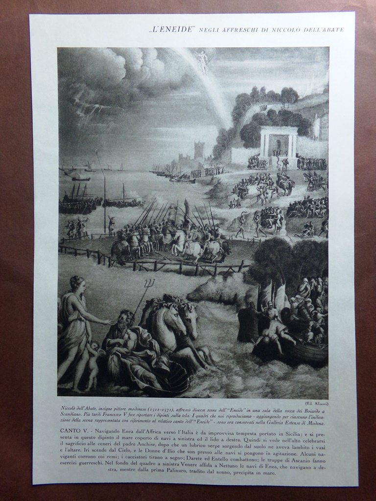 Stampa del 1927 Eneide Niccolò dell'Abate Canti V e VI Rocca Boiardo Scandiano