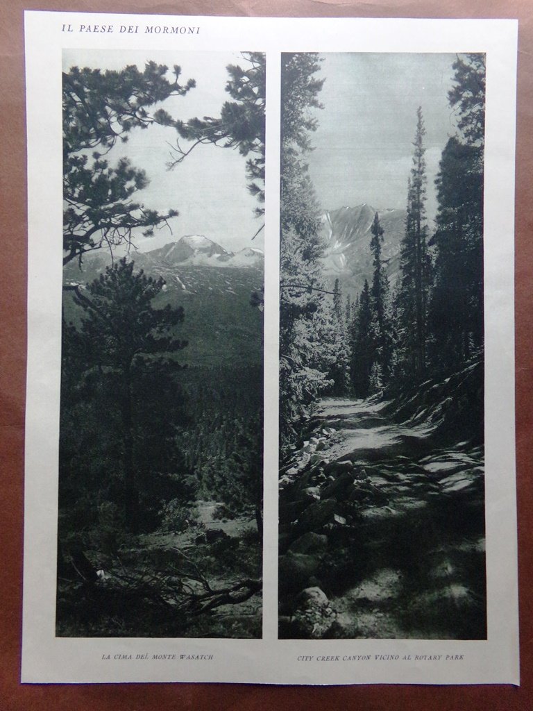 Stampa del 1927 Paese Mormoni Utah Salt Lake Wasatch City Creek Canyon Rotary