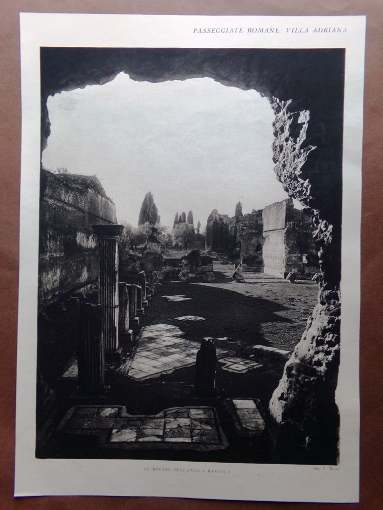 Stampa del 1927 Villa Adriana Roma Rovine Antica Basilica Ruderi Grandi Terme