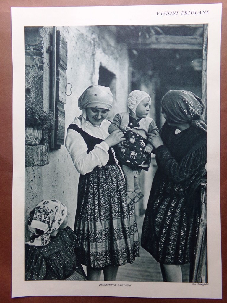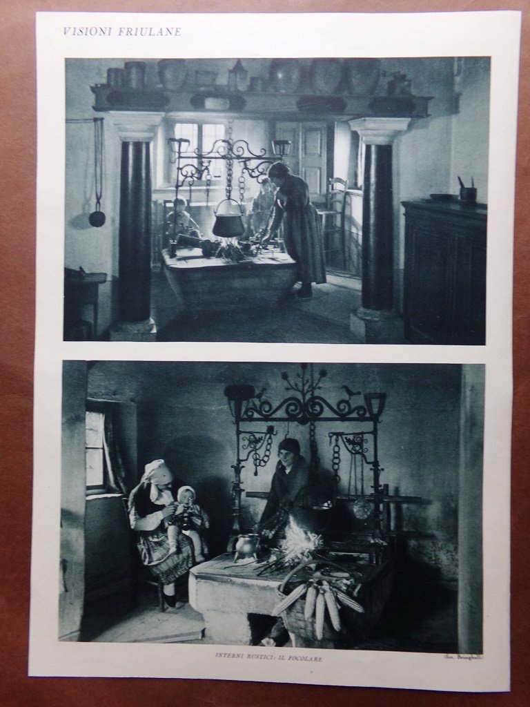 Stampa del 1927 Visioni del Friuli Quartetto Paesano Interni Rustici Focolare