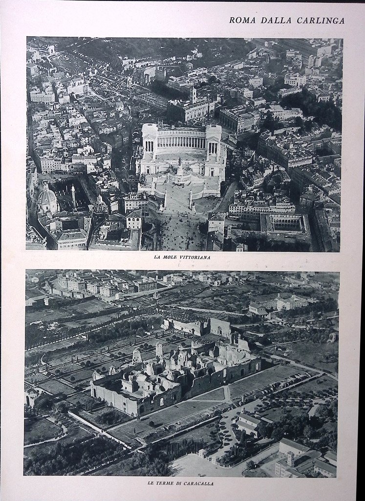 Stampa del 1928 Roma dalla Carlinga Mole Vittoriana Terme Caracalla Sant'Angelo