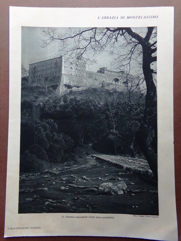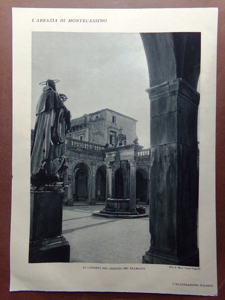 Stampa del 1929 Abbazia di Montecassino Albaneta Chiostro del Bramante