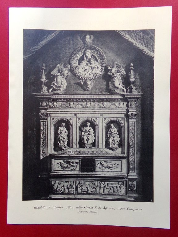 Stampa del 1929 Benedetto da Maiano Altare Chiesa Sant'Agostino Gimignano