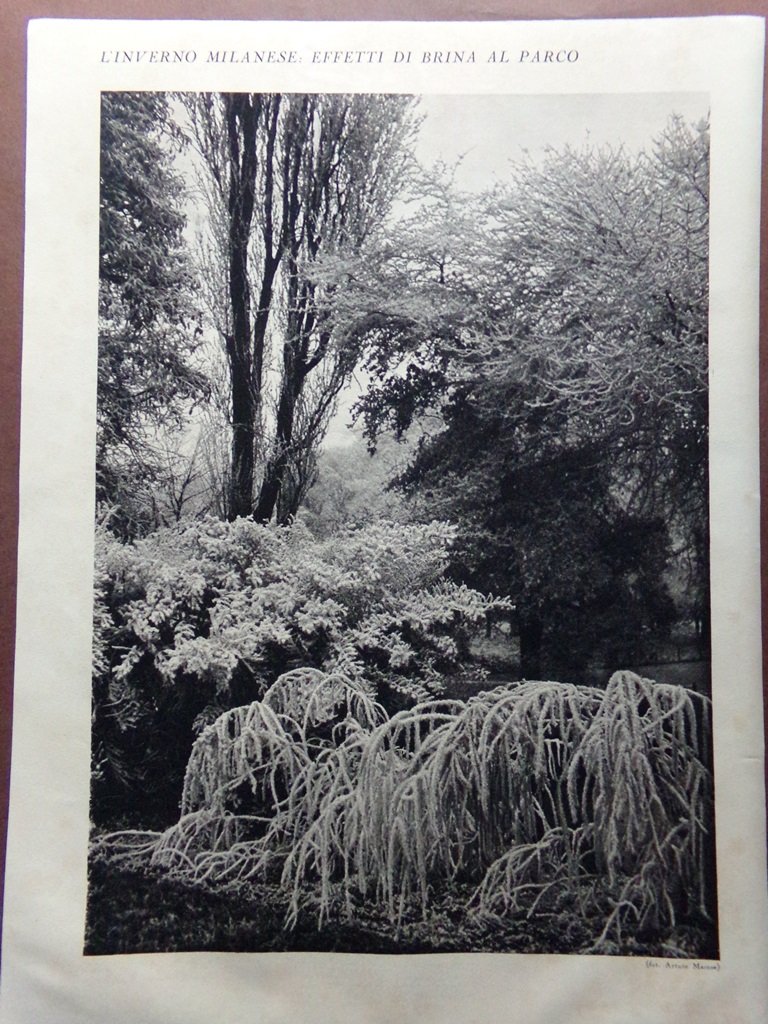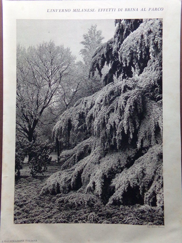 Stampa del 1929 L'inverno milanese: effetti di brina al parco Inverno