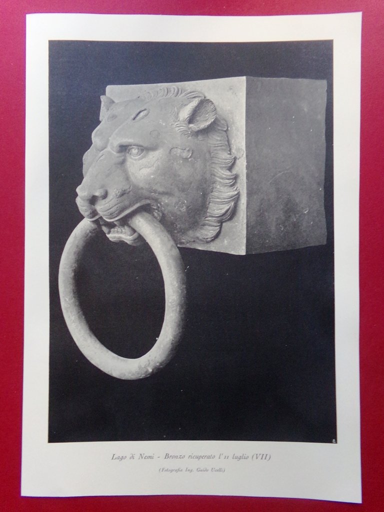 Stampa del 1929 Lago di Nemi Bronzo recuperato
