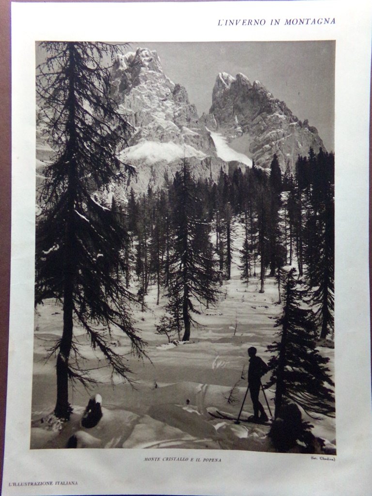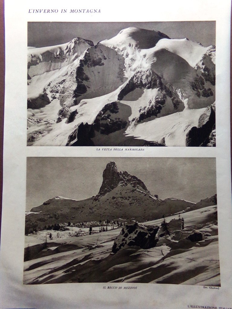 Stampa del 1929 Monte Cristallo Popena Vetta della Marmolada Becco di Mezzodì