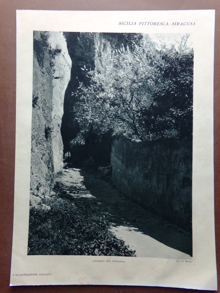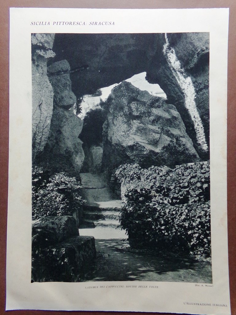 Stampa del 1929 Siracusa Latomia Paradiso Cappuccini Volte