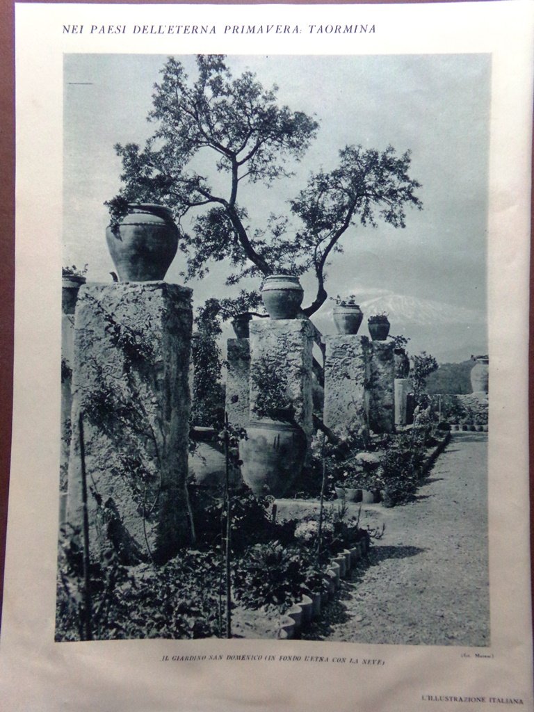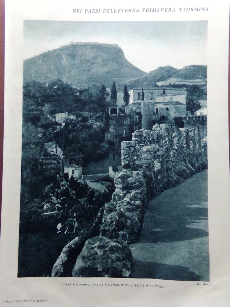 Stampa del 1929 Taormina Civiltà Millenaria Giardino San Domenico Etna