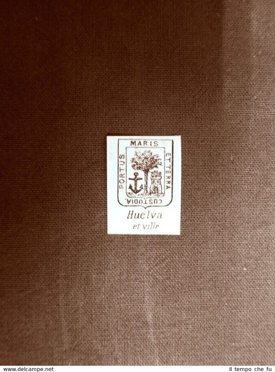 Stemma / blasone della città Huelva et ville Spagna Tratto da un'opera d'araldica del 1865 Araldica-015 Dimensioni Cm 2,00 x 2,50 Qualora vogliate delle scansioni migliori contattateci, soddisferemo ogni vostra richiesta. PaypalCarta di creditoBonifico bancario Accuratamente adagiate su un cartoncino e protette da pellicola trasparente rigida,il tutto viene inserito dentro plico di adeguate dimensioni per proteggerne l'integrità.