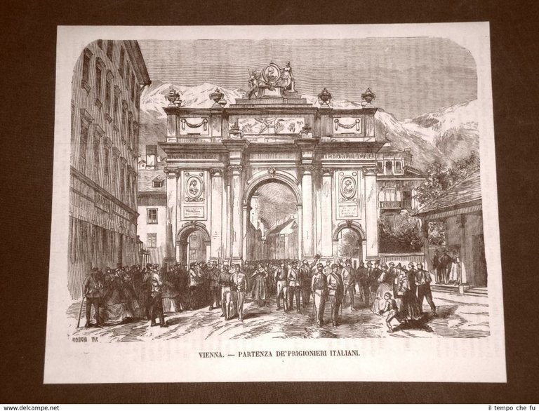 Rara Incisione Estratta da Rivista d'epoca del 1866 . .incisione che ha quindi oltre 150 anni! Terza guerra d'indipendenza in Italia Vienna nel 1866 Partenza dei prigionieri italiani EP1866-020 Dimensioni Cm 25,00 x 20,00 Qualora vogliate delle scansioni migliori contattateci, soddisferemo ogni vostra richiesta. PaypalCarta di creditoBonifico bancario Accuratamente adagiate su un cartoncino e protette da pellicola trasparente rigida,il tutto viene inserito dentro plico di adeguate dimensioni per proteggerne l'integrità.