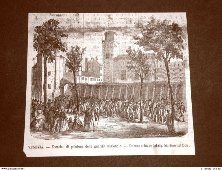 Rara Incisione Estratta da Rivista d'epoca del 1866 . .incisione che ha quindi oltre 150 anni! Terza guerra d'indipendenza in Italia Venezia nel 1866 Esercizi della Guardia Nazionale Schizzo di Martino del Don EP1866-020 Dimensioni Cm 18,00 x 16,00 Qualora vogliate delle scansioni migliori contattateci, soddisferemo ogni vostra richiesta. PaypalCarta di creditoBonifico bancario Accuratamente adagiate su un cartoncino e protette da pellicola trasparente rigida,il tutto viene inserito dentro plico di adeguate dimensioni per proteggerne l'integrità.