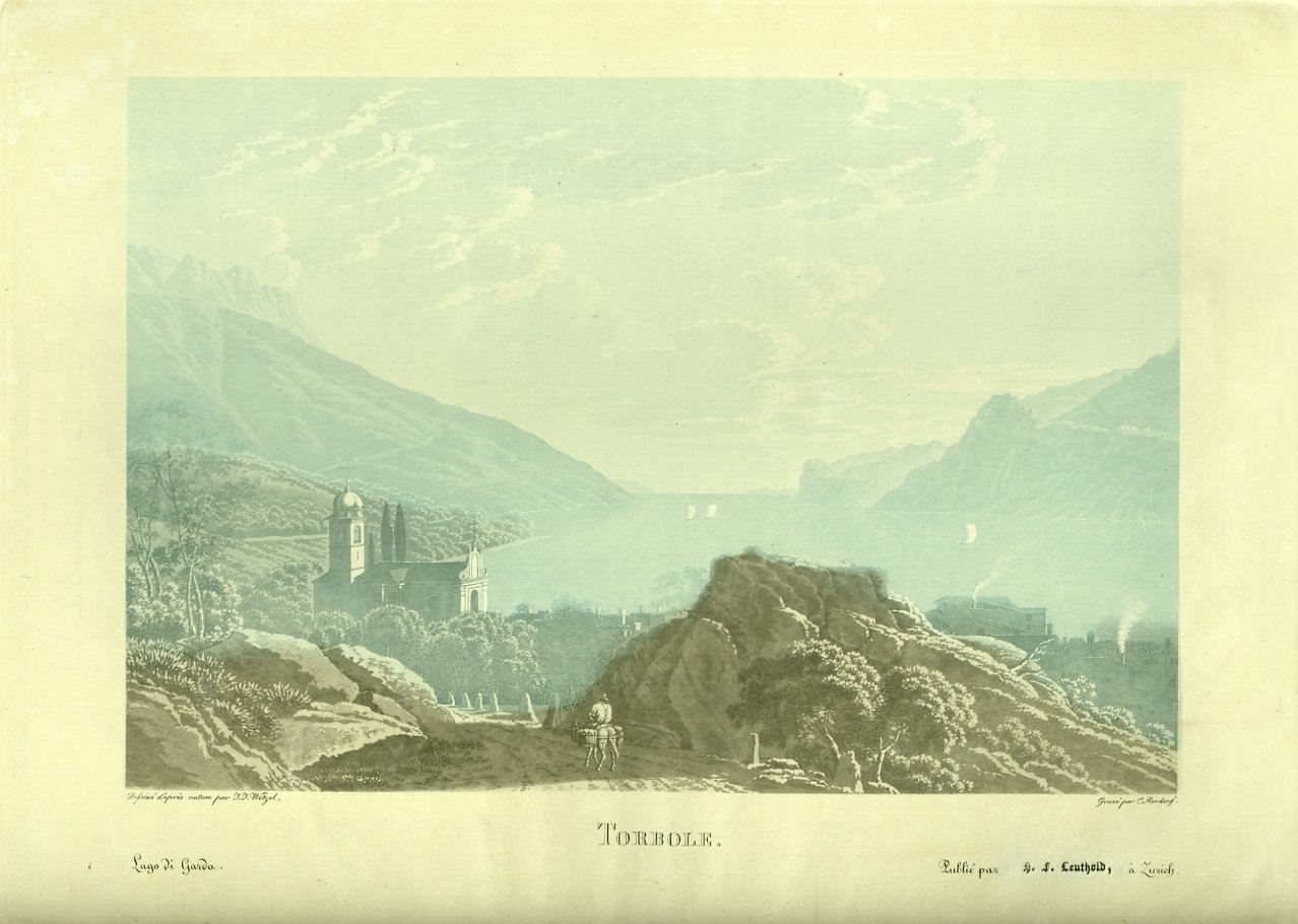 Acquatinta di dimensioni 19x27 cm. Condizioni : USATO - Stato : Buono, ordinari segni d'uso e del tempo. Altre note : Veduta di Torbole disegnata dal vero da Johann Jacob Wetzel e incisa dal di lui allievo Conrad Caspar Rordorf, come si legge nella parte inferiore, fuori cornice. Wetzel (1781-1834) fu disegnatore, paesaggista e scrittore; la presente tavola si trova ad illustrare "Voyage pittoresque au lac de Garda ou Benaco" edito a Zurigo nel 1824. Scheda bibliografica tratta da "Il Garda nelle stampe" a cura di Ugo Spini, scheda n. 47. La stampa si vende in cornice.