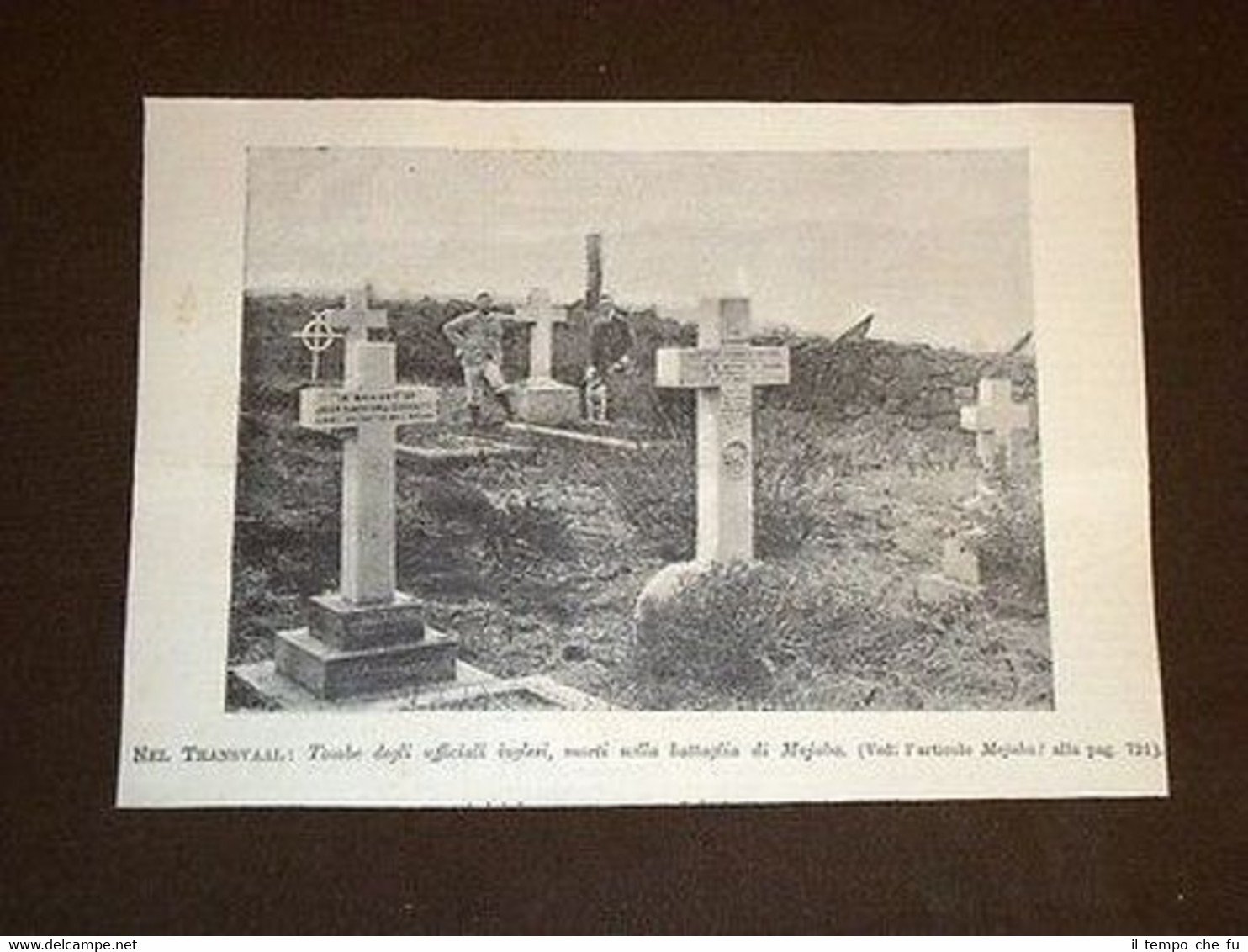 Rara Stampa Estratta da Rivista d'Epoca Transvaal Tombe degli ufficiali d'Inghilterra morti nella battaglia di Majuba Sudafrica IP1899-045T Dimensioni Cm 19,00 x 14,00 Qualora vogliate delle scansioni migliori contattateci, soddisferemo ogni vostra richiesta. Paypal Carta di credito Bonifico bancario Accuratamente adagiate su un cartoncino e protette da pellicola trasparente rigida il tutto viene inserito dentro plico di adeguate dimensioni per proteggerne l'integrità