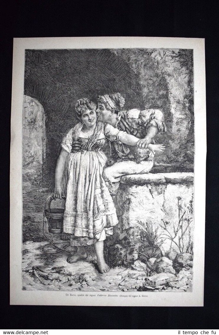 Un bacio, quadro del signor Federico Mazzotta Incisione del 1882 | Stampe |