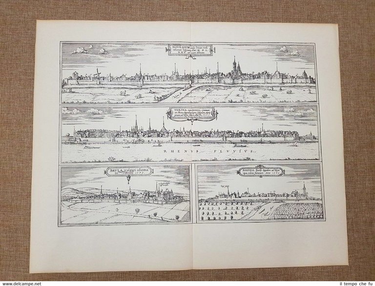Vedute città Neuss Bonn Bruhl Zons Germania Anno 1575 Braun e Hogenberg Ristampa