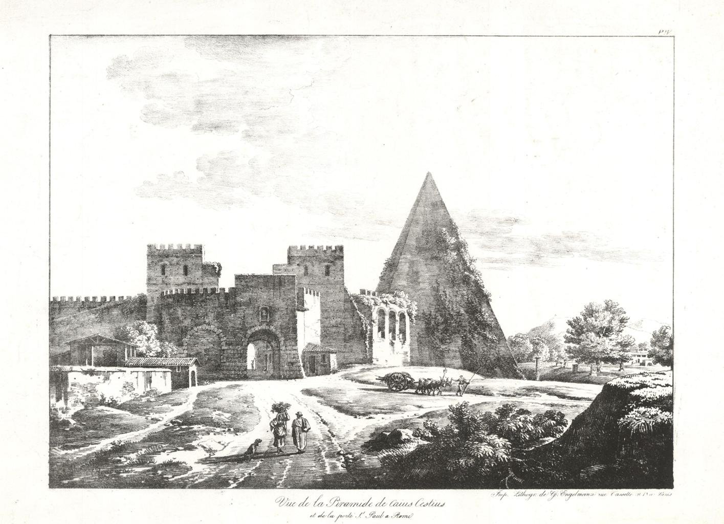 Vue da la Piramide de Caius Cestius er de la Porte S.t Paul a Rome | Stampe | Bourgeois Fidèle Constant 1767-1841 dis. & Engelmann lith., Bourgeois Fidèle Constant 1767-1841 dis. & Engelmann lith.