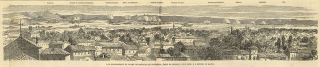Vue panoramique de champ de bataille de Solferino, prise de Medole le 24 Juin, a 8 heures du matin