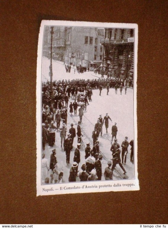 Rara Stampa Estratta da Rivista d'epoca dei primi anni del 1900 WW1 Prima guerra Mondiale del 1914-1918 Napoli - Consolato d'Austria protetto dalla truppa II1915-016 Dimensioni Cm 8,00 x 11,00 Qualora vogliate delle scansioni migliori contattateci, soddisferemo ogni vostra richiesta. PaypalCarta di creditoBonifico bancario Accuratamente adagiate su un cartoncino e protette da pellicola trasparente rigida,il tutto viene inserito dentro plico di adeguate dimensioni per proteggerne l'integrità.